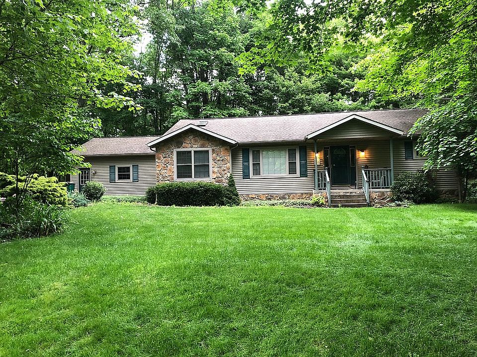 SHOWING BY APPOINTMENT Beautiful ranch home on large wooded lot (1.36 acre ) in Willowdale Lake Community. Full lake privileges ( no dock). Boat ramp at Community clubhouse. Clubhouse has casual bar and grill, picnic pavilion and playground. 12 course unfinished walkout basement can be finished to add bedrooms, family room, rec room... 1/2 bath in basement is plumbed for full bath. 2 car garage. Main floor has over 1700 sf of living space - 2 bedrooms and an office/den. Master bedroom is extra large and spacious. Breakfast room/ eat in kitchen and separate dining room. Covered porches front and back. Wired security system. Maintenance free deck overlooking wooded back. Home is move-in ready , structurally and mechanically sound - sold AS IS.