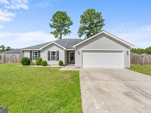 Discover this charming 3-bedroom, 2-bath home in Shadowbrook, where comfort meets convenience and everyday living feels effortless. Designed with an inviting open-concept layout, the spacious living room flows into a bright kitchen featuring a farmhouse sink and oversized island that's perfect for cooking, gathering, and entertaining. Step outside to your own private retreat with a covered back patio and large fenced backyard-ideal for pets, kids, or weekend barbecues. With a split-bedroom plan for privacy, no HOA restrictions, and exclusive community boat ramp access to the scenic Ebenezer Creek, this home offers both lifestyle and value, making it a standout choice for anyone seeking a beautiful starter home with room to grow. **Seller offering $5,000 incentive toward buyer's closing costs with an acceptable contract**