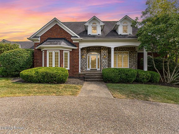 Welcome to 104 Chestnut Glen Dr, a stunning one-owner, custom-built luxury home in the highly sought-after Chestnut Glen neighborhood of Louisville, KY. Perfectly situated on a prominent corner lot at the neighborhood's entrance, this brick-and-stone masterpiece offers over 6,000 square feet of refined living space, including a finished walk-out basement, dual primary suites, and an oversized three-car garage.