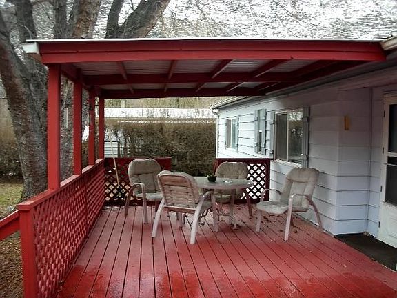 Excellent condition & location. This lovely 1152 sq. ft, Manufactured home has 3 bdrms, 1.75 baths, open & convenient living area, ref. range, dishwasher, woodstove, 38' x 12' front covered deck plus small back deck, chain link fence, 2 shops/storage builings (20'x14' & 14'x16').Nice lawn & trees. Sprinkler system,Community sewer/water, Rapid River sub. #1.