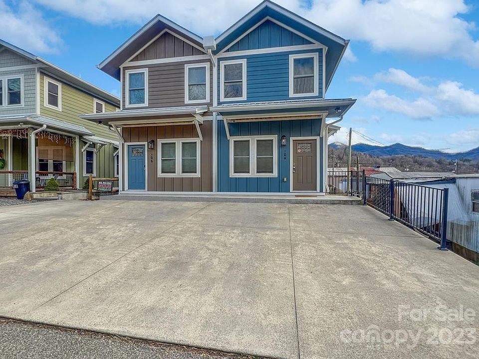 Explore this 2-bed, 2.5-bath townhome in Bryson City, perfectly balancing convenience and charm. It is ideal for short-term rentals, and its walkable location to amenities make it a sought-after investment. Equally suitable for year-round living, the residence boasts a versatile layout. The main level, with 9-ft ceilings, features an open living room connected to dining and kitchen areas, complemented by a convenient half bath. Upstairs, two bedrooms offer full baths with walk-in tile showers, providing comfort and style. Exterior features include off-street parking, a fenced yard for privacy, and covered porches with breathtaking mountain and town views. Enjoy city sewer, water, trash pickup, and the low maintenance of Hardiplank siding. Whether an investment or year-round residence, this townhome offers comfortable living in Bryson City. Don't miss the chance to make it yours!