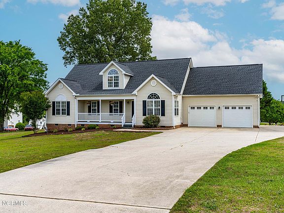 Enjoy front porch rocking on this newly renovated 2700 sq ft 3 bedroom, 3 full bath home situated on 3.94 acres! Fresh paint, new carpet, granite counters, LVP, light fixtures and updated baths. Expansive first floor master with beautiful modern bathroom complete with soaking tub and glass shower, patio door leads out to the large back deck with hot tub that conveys. Head upstairs to enjoy the ultimate hang out space! Additional bedroom and full bath upstairs along with 2 flex spaces and open area with pool table that conveys. 2 detached sheds included for all of your storage needs. Conveniently located minutes to downtown Clayton and Business 70.