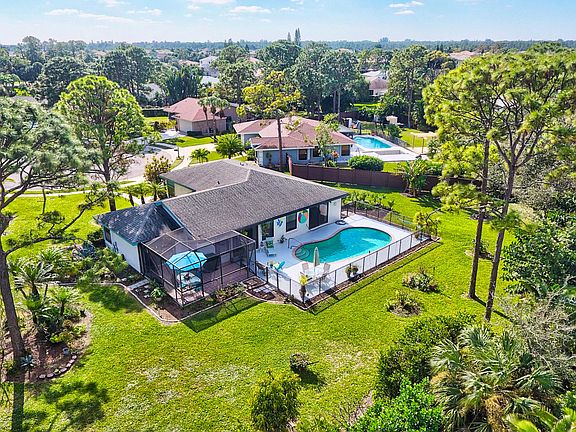 Located on a quiet cul de sac surrounded by lush landscaping, this home sits on 0.46 acres! This is a rare find in Royal Palm Beach with very low HOA fees! Updated kitchen & baths, hurricane panels for added security. The Backyard, patio, & pool deck are secluded and offers additional privacy. Escape to tranquility on this spacious patio to enjoy a salt water pool or escape the heat in the separate screen enclosure. Lots of windows and sliders offer natural light. The updated functional kitchen features lots of cabinets and even an eat in area. Saratoga Pines is centrally located and surrounded by shopping and restaurants.