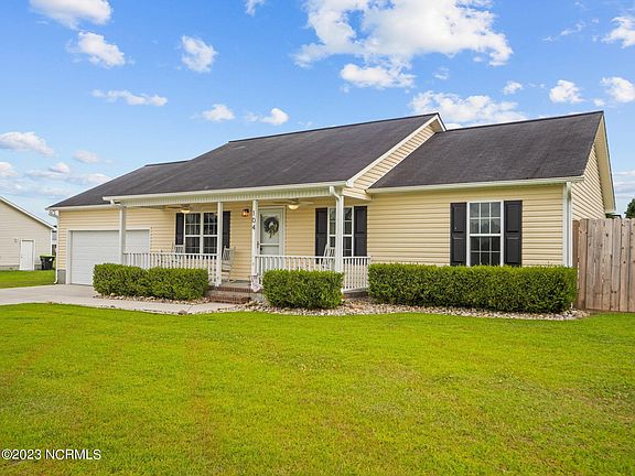 What an exceptional home! This 3-bedroom, 2-bathroom, 2-car garage home is ready to go! Enjoy the front porch or enter the door and notice upgraded LVP flooring throughout the home. The spacious living room is open to the dining area while the kitchen is right around the corner. The kitchen is appointed with spacious countertops and cabinets along with an island. The laundry room is off the kitchen and leads to the two-car garage. Down the hall you will find the upgraded guest bathroom, the two guest bedrooms and the large primary owner's suite that includes a walk-in closet and a full bathroom. Out back you will find the perfect patio and additional space for your boat or RV. The backyard is also fully fenced and has an oversized gate in order to accommodate your boat or RV. The town of Maysville is the perfect place for those looking for a little more peace and quiet while also still being within 20-30 minutes of everything to include Camp Lejeune, Marine Corp Air Station New River, retail stores, restaurants, and grocery stores. Make you appointment today to see this exceptional property.