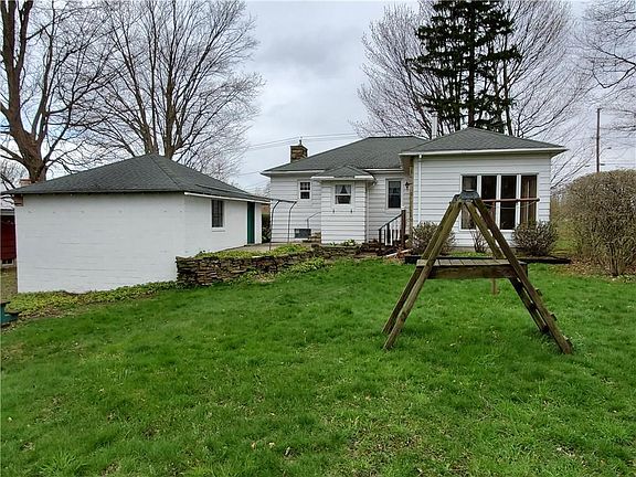 Quiet Village Location! This Ranch style home has charm, character, and could be your new home! It has a gorgeous sunroom with a slate floor, a brick feature wall, and LOTS of natural light flooding in from the windows. This home is located on a large lot with a big back yard and a detached two-car garage. Being on a dead-end street in the village, the neighborhood is quiet but you are in close proximity to your amenities - shopping, restaurants, and activities. You are also close to I-90 for anyone who likes to travel. This home includes the original hardwood floors underneath each of the carpets. Lots of windows throughout offering in natural light. This home is efficient to heat in the winter with its added wood-burning fireplace and woodstove and it stays cool in the summer months. The washer and dryer are located in the basement, which is dry and is spacious for storage and offers a workbench. Schedule your VIRTUAL Showing today! This home is priced to sell!