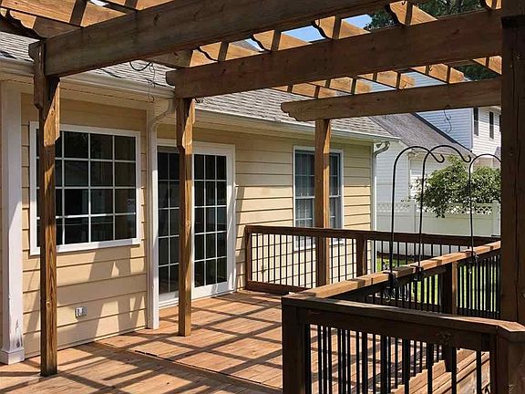 Come see porch life perfected! This home offers a large deck/screened porch with vaulted wooden ceilings, hot tub, and plenty of entertaining room. Master suite has direct access to the porch and a large bathroom/walk-in closet. Hardwood floors throughout w/tile in kitchen/bathrooms. Natural light via solar tubes in several rooms. Kitchen includes stainless steel appliances and solid surface tops. Outbuilding provides additional storage. Very quiet location in neighborhood and close proximity to schools