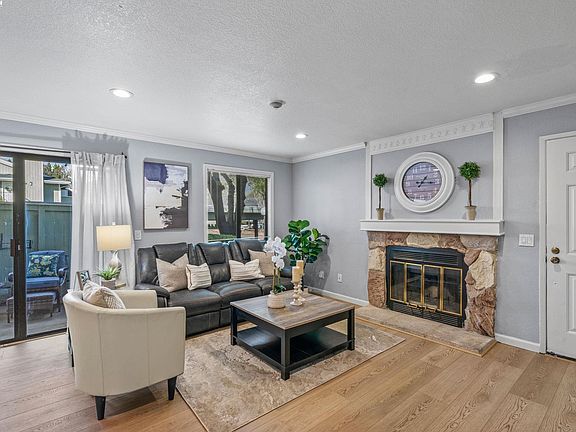 Beautiful, bright and airy, this end unit, ground level townhome-style condo has been recently updated with fresh paint, new carpet in bedrooms, lvp throughout main living spaces, and modern light fixtures. Open layout includes gorgeous white kitchen with updated backsplash, stainless steel appliances and, granite slab counters overlooking the living area centered with a beautiful Stone encased fireplace, and dining area. Walk outside to your private patio and enjoy your morning cup of coffee or tea. The newly renovated community pool is perfect for those hot summer days. 2 parking spaces for convenience, laundry area with washer/dryer included. Walkable distance to shopping and restaurants. Great Proximity to Top-Rated Schools, San Ramon City Center, Shops at Bishop Ranch and freeway access. OH 2/3-4 1-4pm