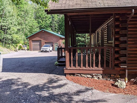 This is a Beaver Mountain Custom Log Home. It is located in Chenango Forks NY. Chenango fork school district. It sits on 6 acres on top of mountain with beautiful mountain views and a very private setting. This is a 3 bedroom 2 bath home with newly remodeled kitchen, laundry room, breakfast kook, formal dining room,office, extra room/guest bedroom. This home has baseboard hot water heat,well,and septic system. The oversize garage is 30x40 foot well insulated with heat water and 100 amp service. Total taxes are 6800 dollars.