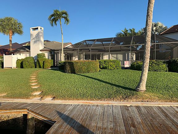 Fabulous tip lot with panoramic bay views! Southern exposure, Gulf access, 3/2 pool home with double car garage. Has shiplap ceilings, Neutral tile through out. Surrounded by beautiful homes on the cul-de-sac. Features 137 feet of water frontage for building your new dream home. One of the best lots in all of Conners Vanderbilt!!! Enjoy boating from your private backyard! Bike to the beach!