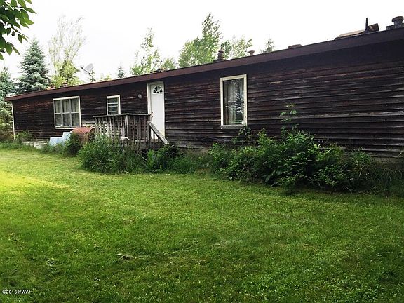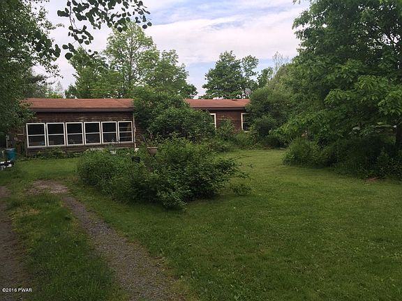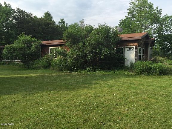 Private, peaceful, and large improved lot minutes away from motor boating, fishing, and Lake Wallenpaupack living with easy access to town for shopping. This 2 bedroom, 2 bath Ranch is the perfect handyman special and can be a prime weekend getaway or full time residence. Features include master bedroom, living room, open floor plan and screened porch for that extra sq ft., along with a pellet stove and wood stove for added ambiance. The possibility for a tear-down and custom built home or just leveraging the improved lot for your camper/RV is also a great option in this prime location. Park your boats, RV, ATVs, and other toys next to the lake. The lot and home are being offered as is and are perfect as a fixer upper.