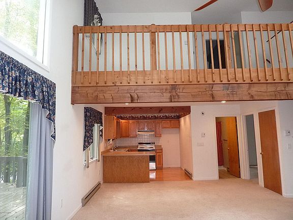 Lake Wallenpaupack Lake Rights Contemporary in the Desirable Neighborhood of Tanglwood Lakes community. This Salt Box style Open Floor Plan Contemporary features 3 Bedrooms, 2 Full Baths, Large Loft, Skylights and Wood Burning Stove in Living Room. Large Back Deck for entertaining, Paved Driveway with Lots of Parking, Appliances , Landscaped corner Lot and Great central location in community. Tanglwood Lakes community offers a beach on Lake Wallenpaupack, boat slips, tennis Court, Security, children's play area and more. Boat Slips Available at Marina next to Tanglwood Beach Area. Enjoy this Move In Ready Vacation or Year Round Home.