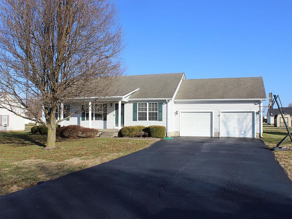 Charming country ranch features a split floor-plan, 3 bedrooms, 2 full baths, living room w/cathedral ceiling, kitchen includes appliances, dining, large laundry room, covered front porch, back deck, large backyard, 2 car garage. Ensuite is private from the guest bedrooms and has 2 separate closets & linen closet. Clean and neat home. Country Meadows is a small, quiet subdivision-just a couple streets, convenient to Danville, Stanford or Liberty.