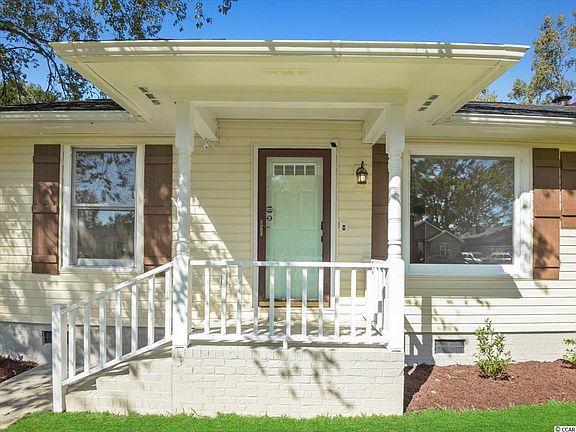 **Your second chance at this home is here, back active at no fault to the seller ** Welcome to Myrtle Beach, SC! This quaint home has location, location, location!! Perfectly situated in the heart of the city, this home screams potential! Could be fantastic for an investment, starter home or second vacation residence without tourism. With several upgrades, this home boasts two beds and two full baths, a huge front and side yard, with a private backyard hang out and large screened in porch! Brand new shutters, landscaping and fresh paint can help you to easily turn this property into your private oasis. Upon entry, you’re pleasantly met with new LVP flooring throughout the main living areas, contrasting beautifully with the fresh Shoji white paint of this split floor plan home. Starting our tour in the spacious and bright living area, this space is large enough to fit a sectional and additional seating. To the rear of the home is the dining area that can accommodate a 4 person table, just off the galley style kitchen. The kitchen has been upgraded with new cabinetry, formica countertops, fixtures, fresh paint and newer appliances.Through the kitchen is an area for an eat-in dining, a pantry, access to the rear porch and location for the washer/dryer connection. On the right side of the property, through the double doors is the primary bedroom. This large room has a wood burning, all brick fireplace to keep cozy on winter nights. Plenty of space for a king bedroom set, ceiling fan, hardwood flooring, closet and an ensuite equipped with a stand up shower, new toilet and white vanity with under counter storage. On the left of the home is the second bedroom, which can comfortably accommodate a queen size bedroom set, with a corner sitting space. This bedroom has its own ensuite with a tub/shower combo and single vanity. We have had the HVAC serviced, and the roof is 7 years old. With a 15-20 minute drive to the beach and plenty of shopping, restaurants and local activities this home has everything you need and more. Come tour this gem today!