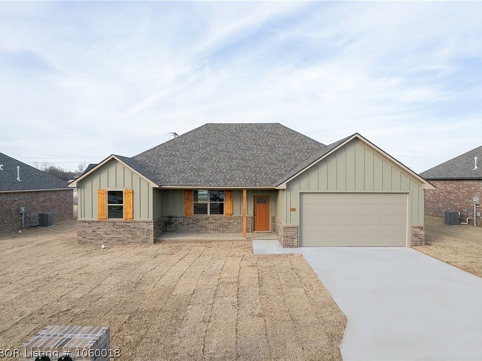 Beautiful new 3 bdr, 2 bath, 2 car garage home only minutes to Fort Smith! Open floor plan, split bedrooms, high ceilings, gas hot water tank, gas high efficiently heater, covered back porch, Stainless steel appliances, wood look vinyl plank thru out home, Led lights, granite, stained custom knotty alder cabinets, 2 kitchen islands, architectural shingles and a generous yard. Protective covenants in place but no POA dues. 1 yr builder warranty included. Owner/agent