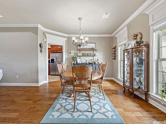 Experience the ultimate in country living with this stunning 4-bedroom, 2-bathroom home situated on 1.24 acres in the Valley View school district. With an open floor plan, this home is perfect for entertaining guests and hosting family gatherings. The spacious living area is filled with natural light and features a cozy fireplace. No attention to detail was spared, from the gorgeous hardwood flooring to the detailed crown molding. The kitchen boasts stainless steel appliances, ample counter space, and a breakfast bar, making it the perfect place to whip up delicious meals. There is a formal dining area and eat-in breakfast nook. Step outside to the screened-in back porch and enjoy the serene views of the surrounding countryside. It's the perfect spot to enjoy your morning coffee or relax after a long day. The home also features a 2-car garage, in-ground storm shelter, and is pre-wired for a generator. Additionally, there is a 20x20 shop with its own concrete driveway, providing the perfect space for a workshop, storage, or even a man cave. This home was built as a Doug Rye Energy Efficient home, and the average CWL bill in 2022 was $165/month! Call today to set up your tour!