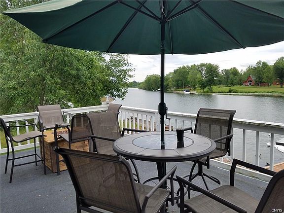 Beautiful waterfront property with deep water dock just 5 minutes from interstate 81 and convenient to Great Northern dining and shopping. Upper living area open concept kitchen, dining, and living room with slider and private deck overlooking the river. Master bedroom and bathroom, second bedroom and guest bathroom. Frist floor includes 2 bedrooms, 1 bathroom, open kitchen great room with slider and private deck. Large driveway and shared 2 car garage, huge dock for fishing and boat!
