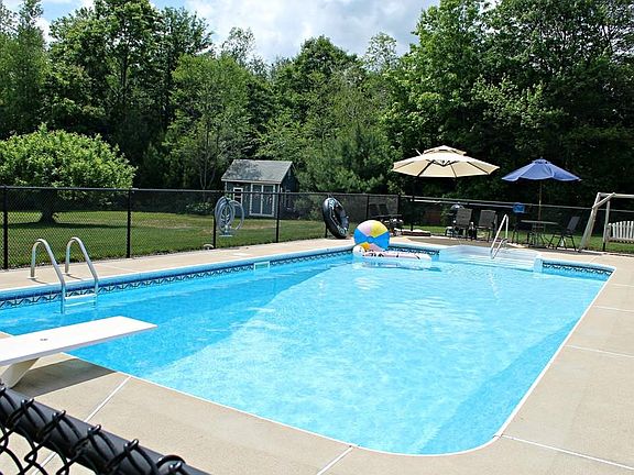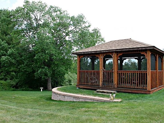 Spectacular contemporary Lindal cedar home in a Culd-de-sac neighborhood. This home is designed with passive solar which is great for energy efficiency. The back of the house faces South and captures heat through the large windows, ceramic floors, and amazing floor to ceiling stone fireplace. You will love the large kitchen with granite countertops, large pantry, 2 built in ovens, range and appliances. There are a lot of trees for privacy on the borders. This home is truly unique & if you love contemporary homes this is the home for you! Multi levels, gorgeous wood beams, strong-geometric shapes, use of natural light, & lots of natural elements such as cedar, wood & stone. This lot is 4.08 acres & perfect for entertaining in the large backyard with an in-ground pool and 12x16 custom built screen house or the stone patio in the front. 2 full baths. A large master bedroom. 2 car garage with attic above for plenty of storage. Close to major routes, but quiet & peaceful.