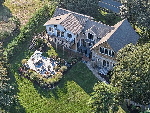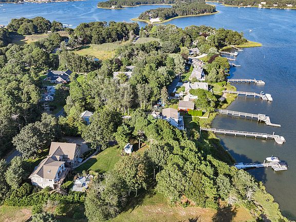 Presenting a charming West Dennis property on a beautifully landscaped one-acre waterfront lot with private dock. The house has 10 rooms and a large, attached barn, and numerous high end amenities. Situated on Grand Cove with direct access to Bass River, the private dock at the base of the sweeping lawn provides room for two boats and launching for canoes and kayaks. The house has 4 bedrooms and 3 full bathrooms, a large great room with kitchen and dining, home office and large game room. The primary bedroom is ensuite and there is a first-floor level providing bonus space for working from home, library, or personal gym. Large windows in all the main rooms bring in natural light and expansive water views. The garden has a large blue stone patio with a custom-built fieldstone wood burning firepit. Amenities include a large laundry room, full house generator, plantation shutters, two car garage with built in shelving, outdoor shower and storage shed. Air conditioning, natural gas, full irrigation and water and electricity at the dock complete this home. Ideally setup as an incredible seasonal rental investment or a private summer retreat having access to Nantucket Sound