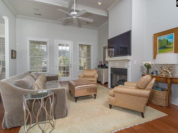 - Living Room: Fireplace, Floors-Hardwood, Molding, Ceilings-Box, Ceilings-High (over 9 Ft), Ceiling Fan