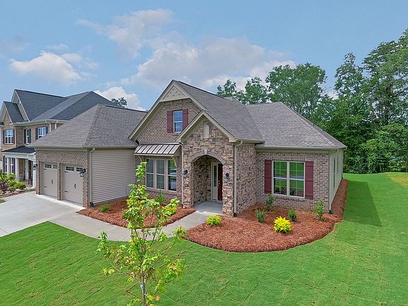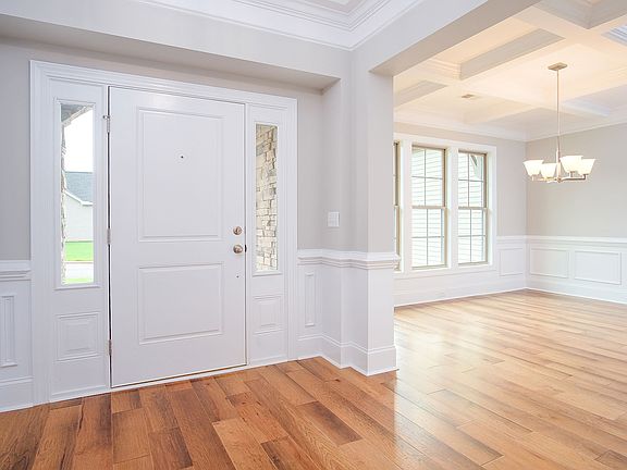 Private back yard! This beautiful Byrnes II plan has the WOW factor! Main level living with an open floor layout, great for entertaining or family time. The spacious family room has a gas fireplace and is open to the kitchen. Host family and friends for dinner in the stylish dining room. The kitchen features built in oven and microwave, hood, and cooktop stainless appliances, light quartz counter tops, walk-in pantry, and a kitchen island with storage. White farmhouse subway tiled backsplash finish off this functional kitchen. Beautiful 7" hardwoods in the primary suite, no carpet here! The split floor plan offers a large primary suite for privacy with a large walk-in closet, tiled floor and separate shower and tub. The primary bedroom also has a cozy sitting room with a gas fireplace for morning coffee or latenight reading. Two additional bedrooms with a shared bath complete the downstairs living space. Additional features include 7" plank hardwood flooring, crown molding and trim, powder room, mudroom, and covered porch.