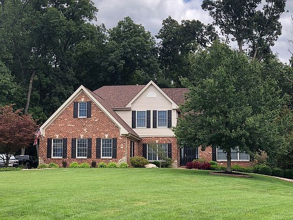 CUSTOM BUILT HOME ON 1.18 ACRES IN GREAT LOCATION! IMPRESSIVE BRICK AND STONE 1.5 STORY HOME ON A BEAUTIFUL WOODED LOT! ENTER THROUGH THE FRONT DOOR AND YOU WILL FIND YOURSELF IN THE SPACIOUS FOYER WITH OAK HARDWOOD FLOORING! ENORMOUS GREAT ROOM WITH INVERTED VAULTED CEILING, HUGE WINDOWS & FLOOR TO CEILING BRICK FIREPLACE WITH GAS LOGS! LARGE KITCHEN WITH CUSTOM HICKORY CABINETS, 8FT. CENTER ISLAND, BUILT-IN DOUBLE OVEN AND RECESSED LIGHTING! HUGE BREAKFAST ROOM WITH TRIPLE PATIO DOOR WHICH LEADS TO LOVELY PATIO W/ FIREPIT AND WATERFALL. OFFICE AND MAIN FLOOR MASTER BEDROOM WITH COFFERED CEILING AND LUXURY MASTER BATH WITH WHIRLPOOL TUB! UPSTAIRS YOU'LL FIND 3 LARGE BEDROOMS WITH WALK-IN CLOSETS AND 2 FULL BATHS --ONE IS A JACK-N-JILL BATH! ALSO THERE IS A GREAT BONUS ROOM ON UPPER LEVEL AND A BALCONY OVERLOOKING GREAT ROOM! LOWER LEVEL HAS A MEDIA ROOM AND A PARTIALLY FINISHED W/FULL WALKOUT . Brokered And Advertised By: Keller Williams Realty West Listing Agent: Richard Stokes