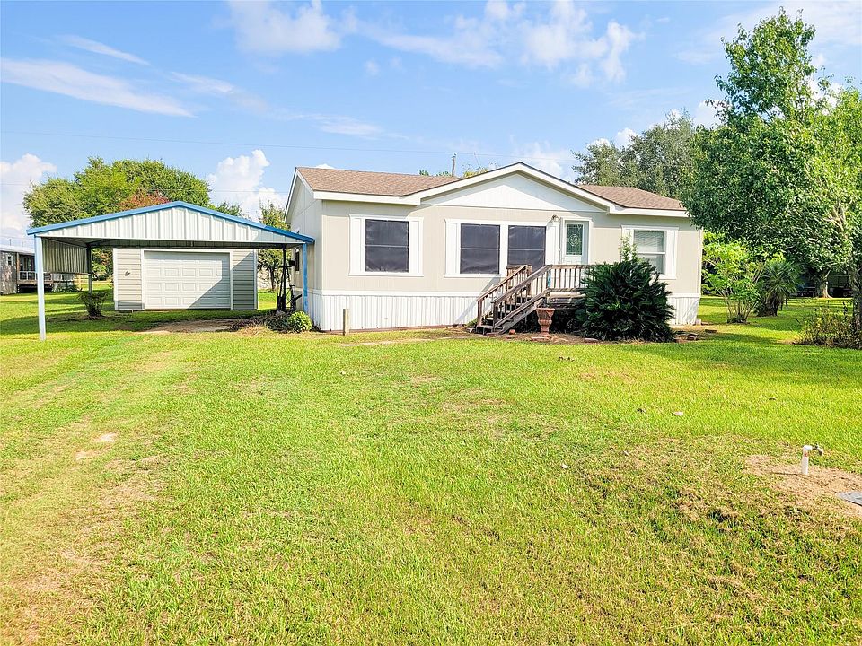 Welcome to beautifully maintained 3bdr/2bth residence nestled on a spacious 0.37-acre lot in gated community Cape Carancahua in Palacios. With 1,064 sf of thoughtfully designed living space, this home combines comfort, charm, and affordability. A split floor plan offers privacy, with master bedroom on one side and living areas/other bedrooms on the other—perfect for families or hosting guests. Equipped with ceiling fans, electric heat & air conditioning for year-round comfort. New 3 ton AC system installed in Sep 2025. Includes major appliances like washer, dryer, side by side refrigerator. Detached garage and 2 spaces carpot. The large lot gives you plenty of room for gardening, outdoor entertaining, or simply enjoying Texas sunsets. Cape Carancahua community offers lots of amenities: water supply system, boat launch, fishing piers, swimming pool, tennis courts, playground, picnic area, community center, picnic pavilion, etc.