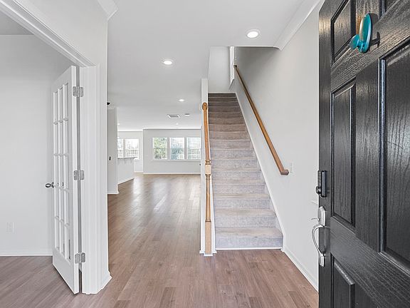 Situated along Henry E. Brown Jr. Boulevard in the heart of Goose Creek, this like-new smart home is located in close proximity to restaurants, entertainment, and just minutes away from the Naval Weapons Station. Liberty Village offers everything you would need to enjoy Lowcountry living. In addition to the attractive exterior, 104 Daniels Creek Circle welcomes you with luxury vinyl plank flooring and a study on the left boasting glass french doors and ample natural light.The open floor plan is perfect for entertaining and hosting. The gourmet kitchen is a chef's paradise with a kitchen island coupled with bar seating space, granite countertops, stainless steel appliances, and wonderful cabinet space. A separate pantry provides room for additional storage and organization. The kitchen directly flows into the living room and a breakfast area. Off of the living space is a concrete patio with space for grilling and relaxing. The sizable fenced in backyard provides the opportunity for a play set or additional landscaping. Backing up to a natural pond, the views are sure to impress. The spacious master suite is equipped with wall to wall carpet, large windows, french doors, and a walk-in closet. The master bath features a double sink vanity and a large walk in shower. The secondary bedrooms share the two additional full bathrooms and all have walk-in closets - an unparalleled feature. Convenience continues with the attached two-car garage providing privacy and built-in storage shelving whenever needed. Additional features include smart fans, lights, and a keypad.