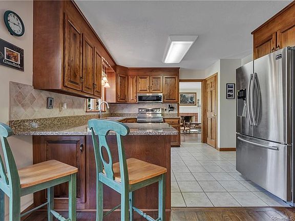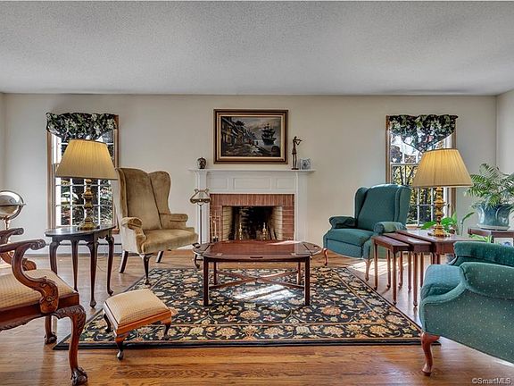 Excellent maintenance makes this well built classic Gambrel Colonial a must buy. This comfortable home with traditional floor plan offers over 3200 sq. ft. of generously sized rooms with oak and tile flooring throughout. Step into the center hall and choose to enter a large front to back living room with wood burning fireplace. The huge kitchen offers custom cabinets with quartz counters, stainless appliances, counter seating and room for a table of eight or larger. Also, a formal dining room is convenient to whisk hot dishes to while entertaining. A first family room was added to the house with a gas fireplace and a relaxing hot tub which can stay or go as a buyer wishes. The four bedrooms upstairs enjoy oak floors too along with granite counters in the baths and upstairs landing by the back stairs. Bedroom four which is presently used as a study is just huge. A beautiful bluestone patio offers privacy while sitting outside and this lot is adjacent to the Deans Ridge neighborhood pool for summer fun, the membership is $200 or $450 depending on the activities you enjoy.