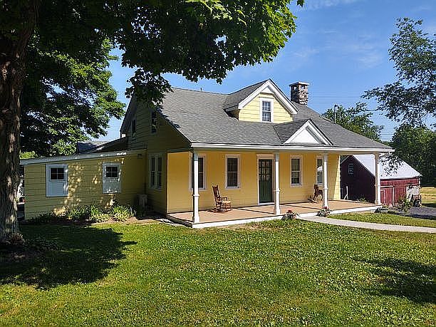Historic 1800's farmhouse on 18.5 acres, professionally renovated. Close to the Village of Warwick with great restaurants and shopping, local wineries, farmers markets, drive-in theater, orchards and schools all within a few miles. House has newly replaced Anderson double hung windows. New roof, new boiler, new mudroom with 10 X 14 deck, all completed in 2020. The mudroom has a Corian sink and Corian countertop, open closet with heat on a separate thermostat, a new front porch with tongue and groove wainscot ceiling and 1x3" pine flooring. New 200 amp service and propane hot water heater.New downstairs bath 2019 with cast iron claw foot tub, pedestal sink with built-in medicine cabinet and linen closet. Kitchen renovated with cabinetry and granite countertops and walnut floor. The pantry is off kitchen with freezer and refrigerator and lots of built-in cabinets and shelves. 3 bedrooms and a full bath on the 2nd floor with wide plank native old growth hemlock floors. Master bedroom with cathedral ceiling and a wall of closets. 2 mirror image bedrooms. Upstairs bath has tile shower, built-ins, custom glass shower enclosure and heated floor. Upstairs is central air and heat. Downstairs is hot water baseboard and a Dutchwest wood-stove (and 4 cords of seasoned firewood included). 18.5 acres, approximately 5-6 acres lawn and field and 10+ acres woods, wetlands with a spring fed creek that runs all year round. Barns are in decent shape for being approx. 150-200 years old. We are doing ongoing improvements. Property is sub-dividable into 3 lots with the removal of the hay barn.