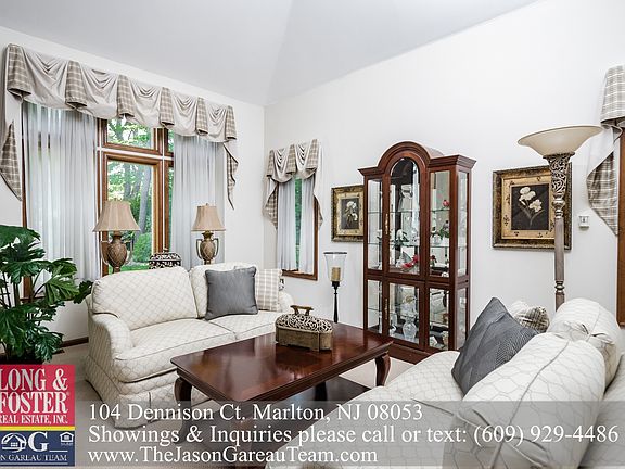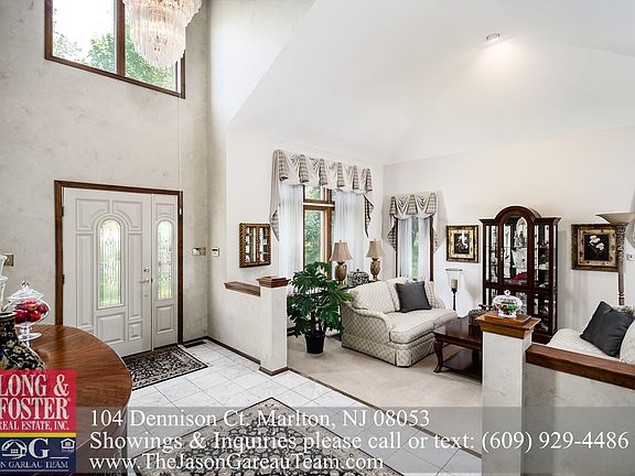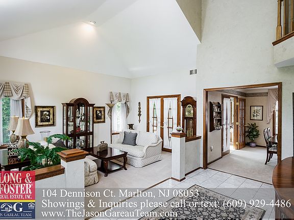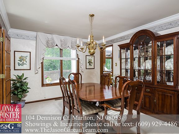 Absolutely beautiful one of a kind custom home in the Dominion section of Marlton/Evesham. You simply can not find a home that has what this home has to offer! The pride of ownership screams as this home has been meticulously maintained in and out by the homeowner. The interior of this home offer a flowing open floor plan, a large 2-story foyer with tile flooring, soaring cathedral ceilings in the formal living room, large windows throughout that provide a ton of light, 2 sets of French doors that lead to a sunroom, a large kitchen with a center island and a breakfast room that is open to the family room and a sliding glass door to the deck, a large sunroom off of the dining room that has a 9 foot sliding glass door to the back deck, a large family room with a wood burning brick fireplace that has been professionally maintained every year and another sliding glass door to the back deck, an expansive master suite with a walk-in closet and a huge master bath, and top it off with an unbelievable fully finished walkout basement that makes you feel like you are in a country club. The basement offers a gorgeous one of a kind fully functional bar with a coffered wood ceiling, a large seating area, a pool table or gameroom area, a new gas fireplace, a large full bath with a tile entry for people coming from the pool and all this with the ability to walk out to the covered concrete patio that is open to a huge in-ground pool with a newer liner. The exterior of this home is like your own private oasis and boasts extensive professional landscaping, a concrete driveway that leads to a 2-car garage, a newer roof, a huge 2-tier deck that runs the entire length of the back of the home, a fenced-in yard, and all of this located on a quiet cul-de-sac with no through traffic. This is truly one of a kind home, don't miss your opportunity to see this wonderful home.