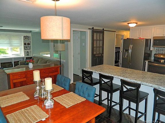 Nicely updated country home with a shabby chic/rustic decor. This classic raised ranch home offers an L-shaped open floor plan kitchen, eating area and living room. The kitchen is light and bright with white cabinetry, new appliances, tin-like backsplash and gray tile flooring. The living room (has hardwood floors) and family room (carpet flooring) both feature fireplaces to gather around and enjoy during the colder months. The full bath on the main level was updated and features a shiplap ceiling and tile flooring. Three nice sized bedrooms and slider to back deck round out the main level. In the lower level you have a spacious family room, great for entertaining or playtime. There is a another full bath, multiple closets and a large laundry room with outside access, could be a great mudroom (but also offers storage) and lastly is the access to garage that round out the lower level. Partial fencing across the back of the property, nice backyard with access to the large upper deck (17x14) which overlooks the yard and for summertime fun and an above ground pool (Note-seller will remove if buyer does not want). Brand new water heater and overall good condition for this lovely home sited 2.88 acres. You will also love the quaint charm of the town of Marlborough, easy access to everything and lovely lake with park and beach access for all residents. Don't miss this lovely home, Joanna Gaines would like it!