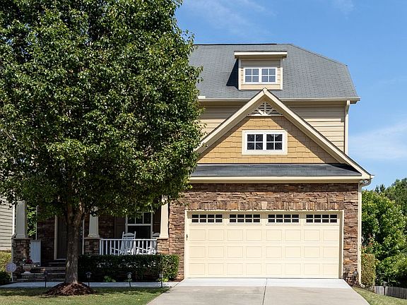 Home with beautiful details & lots of natural light throughout. Amazing basement features home theater with built-in speakers, (screen & projector not included) large rec room, wet bar area, bedroom & full bath. Open kitchen with stainless steel appliances, granite counter-tops, gas stove, pantry & French doors to patio. Family room with fireplace plus separate living room. Roomy master suite with tray ceiling, dual sinks, garden tub & separate shower & walk-in closet. Covered front porch, deck & patio in fenced back yard. Neighborhood pool, tennis court & playground. Great location close to Apex and Holly Springs. Short distance to I540.