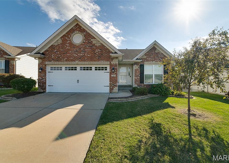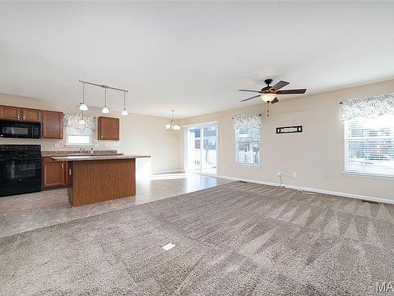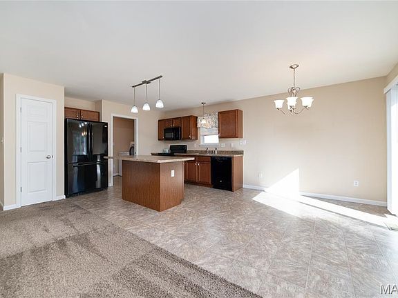 Welcome home to this wonderful 10 year old stand-alone ranch villa in desirable St. Andrews Village community. Enter into the large foyer and be welcomed into an airy open floor plan. The carpeted great room flows into a spacious kitchen/dining room combo that features vinyl flooring, a breakfast bar, 36-inch maple cabinetry, and black appliances, which include a smooth-top self-cleaning range, microwave, and dishwasher. Sliding glass doors in the dining area step out onto the 11' x 8' wooden deck with vinyl rails, a perfect spot to enjoy your morning coffee. The primary bedroom suite feature a large walk-in closet, linen closet, dual vanity, and 5' shower with corner seat. Main level offers second full bath & second bedroom plus main floor laundry room just off the kitchen. Everything on a daily basis can be found on the main level. Lower level offers additional living space including a sleeping room or office, great for visiting guests. Basement still has plenty of storage space as well. Two-car garage has an insulated door with Lift Master My Q remote opener. An invisible dog fence makes the yard the perfect place for your pet to play outside! Excellent location with easy access to I-70 and hwys. 94 and 364, and grocery stores, restaurants, and shopping nearby. Schedule your private tour today!