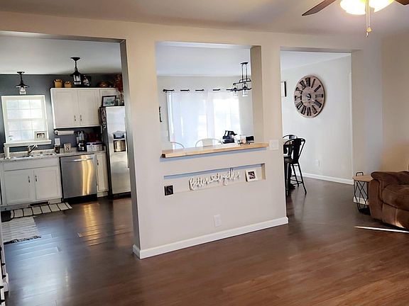 Welcome home to this newer built home located in the small community of New London. The home has an open floor concept with an oversized living room that opens into the kitchen. The kitchen offers a breakfast bar that separates the two rooms. The kitchen has a tiled backsplash and updated counter tops. The appliances are newer/stain steel and will stay with the home. The dining room has a sliding glass door the leads to the patio. The home has main floor laundry. The washer and dryer will stay. The primary bedroom is comfortable size and is a suite with a walk-in shower. The backyard has an above ground swimming pool with a pool filter. All the equipment to the pool will stay. The deck around the pool has storage under it. The home sits on a 5' crawl space. There is not a basement in this home.