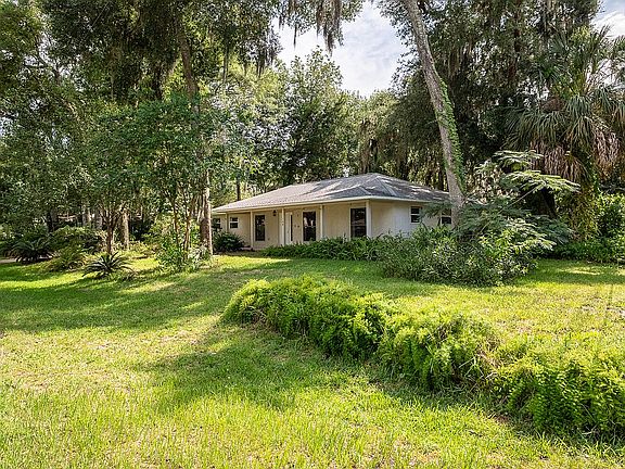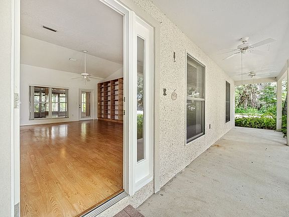 There is nothing like a cool breeze on a hot summer's day. This 2 bedroom 2 bathroom house, nestled on a corner lot, with partial Intracoastal water views delivers just that. You will not want to leave the front porch once you feel that cool air. Nuzzle up with a cup of coffee and take in a sunrise. You'll understand why this home is so magical. Nestled on a corner lot, this split plan home features a spacious living room with floor to ceiling built-ins, all new plumbing, kitchen aid appliances, new hot water heater and a generous sized laundry/ mudroom with plenty of closet space. Need another room? Convert the flex space into a 3rd bedroom and problem solved. Don't worry about pests and other unwanted guests as the house has been maintained with monthly pest control and termite bond. Feel confident in this home knowing it's not in a flood zone. Step out from the enclosed back patio and be transported to a mystical oasis of lush tropical greenery - with a greenhouse to boot. The fully fenced in backyard boasts a detached 1 car garage, storage shed and room to spare to park your RV or boat. Boating enthusiasts will love the close proximity to the public boat ramp.
