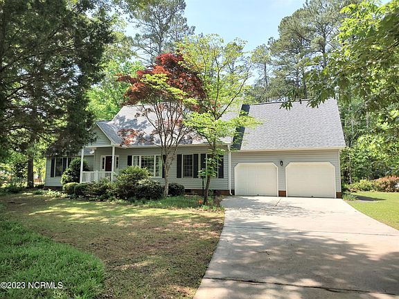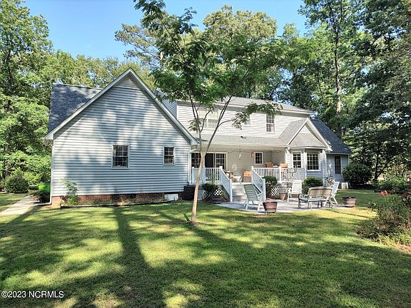 Spectacular home nestled on large lot convenient to historic downtown New Bern. Spacious interior with welcoming foyer offering lovely wood floors and open staircase. Gather in the living room with fireplace and wood floors and large windows bringing in the outdoors. The dining area has a bay window that looks over the backyard. The kitchen has been remodeled with center island, beverage bar area, 2 large pantries, and loads of cabinet space. All kitchen appliances are included. Enjoy your morning coffee in the breakfast area situated by sliding doors that open to the back deck and back patio. The laundry room includes the washer and dryer, has a sink and is convenient to the garage. A bonus room perfect for an in-home office or hobby room is located just off the laundry area. The master suite is on the main level and offer a high cathedral ceiling with walk-in closet. Newer, large walk-in shower in the master bathroom. Enjoy cozy time in the family room just off the kitchen with electric fireplace that has side bookshelves. Upstairs offers 2 bedrooms and large hall closet. There is a full bath with two sinks and tub/shower. The home has a roof that is approx 2 years old, a new water heater, wood floors in the main living area, and a 2 car garage. The yard is open and wooded and has a back shed for lawn tools and more! This location feels like living in the country but is only minutes to town and near the North Carolina beaches. Check out all the many features and value this home offers!
