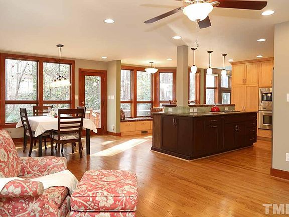 Spectacular custom-built home on private cul-de-sac. Open floor plan w/new hardwoods, extensive lighting & wall of windows. Custom kitchen with modern cabinets, wine rack, pantry, gas range, granite, SS appliances, African hardwood bar & window seat. Stone fireplace in living rm. Large master suite w/updated bath, walk-in closet & balcony study w/tile fireplace. Updated laundry with cabinets, sink, and laundry chute. NEW Roof! Two story sunroom overlooking huge deck, fenced yard & greenway beyond. WOW!!