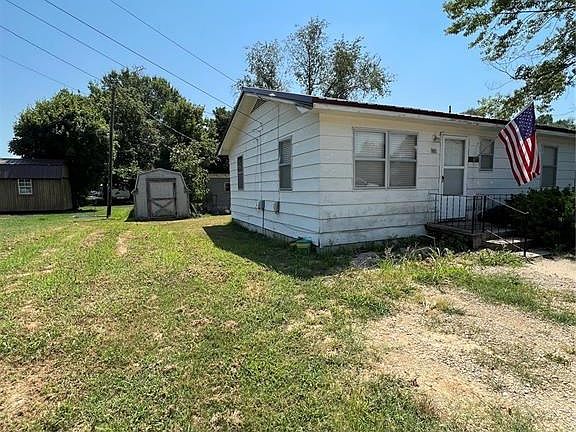 Nice two bedroom, one bath with hardwood floors, eat in kitchen and separate utility room. There are 2 storage sheds in the back yard along with a raised garden spot. Home has a recent metal roof and has vinyl siding. Nice size yard and close to the park. Home is only minutes from grocery store.