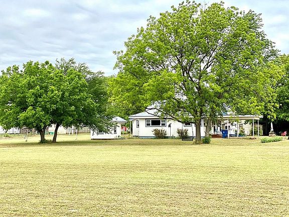 You won't find anything like this 1.55 acre farmhouse! With a unique story to boot, this home is nestled peacefully on a dead-end road. Backing up to pasture land that faces the eastern skies, your morning coffee will be one to savor each and every day! This homes is located on the old railway, allowing you to own a piece of history and added charm! Located within city limits, you feel like you are living the best of both town and city life. The home features an abundance of updated windows, allowing for natural light and comfortable breezes to flow through this charming farmhouse. The kitchen was designed to host large gatherings, and offers easy access to even more entertaining space outside. The home comes equipped with an outbuilding for work and storage, a fire pit space for those evenings outside, a storm shelter, and a great covered porch overlooking the Northside pasture land. Come see this charming, and truly one-of-a-kind home!!!