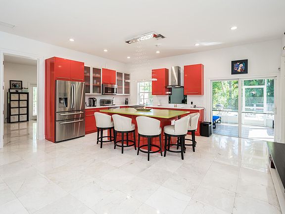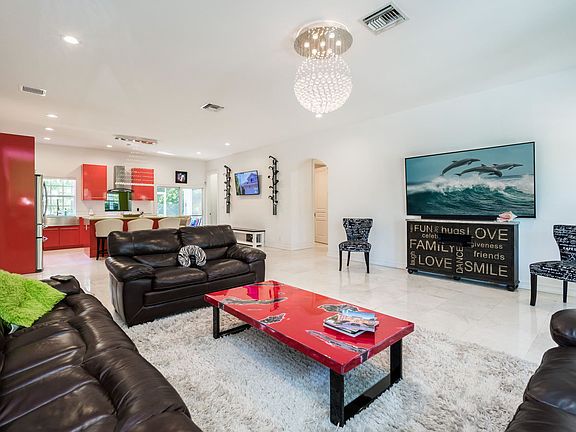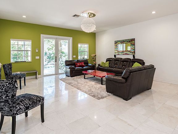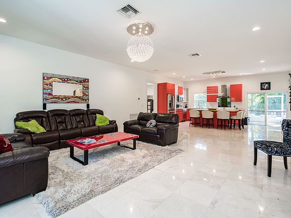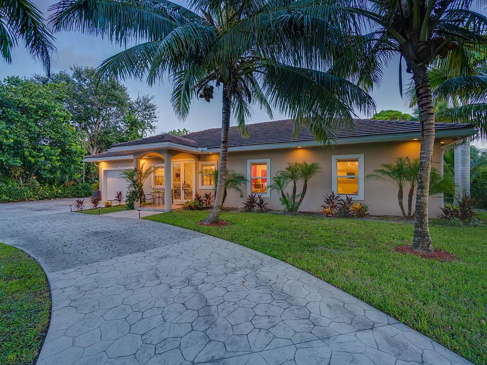 Stunning, 2014 construction, custom-built, 3BR/2BA + den, open-concept home with a contemporary feel, surrounded by a lush green over-sized yard, located in the peaceful community of Cloud Lake in West Palm Beach. You will fall in love with the airy & spacious interior and its many desirable features such as volume ceilings, marble flooring throughout, modern light fixtures, hurricane impact windows, sliding glass doors, and glass-paned French doors. The wide-open custom gourmet kitchen has red cabinets, a large center island, and stainless steel appliances, the huge master suite features a massive walk-in closet with built-ins and marble bath, and an expansive outdoor living area offers fruit trees, a fire-pit, a covered screened-in lanai, and plenty of room for a pool.