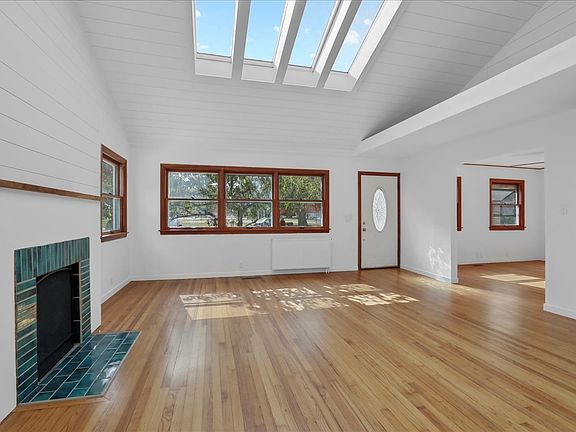 Directly across the street from newly renovated Blair park a unique home sits waiting for you. 104 East Pennsylvania is overflowing with natural light. 4 living room skylights, an 18 foot vaulted ceiling, and an open concept floor plan highlight this home. 104 East Pennsylvania has 3/4 bedrooms, 2.5 bathrooms, a partial unfinished basement, and a large garage. It is just one block South from the Urbana aquatic center and Urbana middle school. One mile from downtown Urbana. Refinished hardwood floors run through the entire house. 80% of the space is on a 1st floor including all the bathrooms. The half bathroom is a Jack and Jill style and can be accessed from 2 of the bedrooms. This home has central air conditioning and the roof replaced on 5/17/22. Glass double doors open out from the kitchen/dining room area into an oversized 3 season screened in porch overlooking a deep backyard. Enjoy the tall pines and natural tree canopy of Urbana. The kitchen is a stunner featuring unique chocolate walnut counter tops with a large centered island for meal prep. Relax in the living room by your wood burning fireplace while enjoying the Blair park views across the street. Cross the street and stroll around Blair Park on the newly finished pedestrian pathway that runs through the trees and around the tennis courts. 104 East Pennsylvania is ready waiting for you.