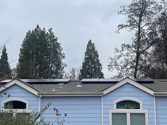 Spacious home, that’s move-in ready and walking distance to town! WILL PAY BUYER’S AGENT COMMISSION. Beautiful manufactured home, built in 2004. Pride of ownership shows in this sweet in-town home. Great home on quiet cul-de-sac with 2 other homes and walking distance to town! Beautifully landscaped, front yard has a mixture of river rock, shrubs, flowers, and a white picket fence. 2x6 interior walls give great insulation from noise and weather and give the home an overall secure feeling. Brand new hardwood floors, roof and OWNED SOLAR! Backyard has nice landscaping, mature grapes and rasberries, two decks, and a garden are with raised beds and automatic sprinkler's, all situated on .23ac. Three bedrooms two baths all one level, 9 Ft. coffered ceilings throughout the home with a great open floor plan. Large great room open to spacious kitchen with island and walk in pantry. Corner sink with large windows looking out onto lovely landscaped backyard and deck. Nice built-in/serving bar with lots of storage. Formal dining room has access to entry and kitchen. Wide hallway to the bedrooms and a second bathroom which is situated right in-between the 2nd and 3rd bedroom. Second bedroom has built-Ins for an office or sewing room. Master is well appointed with 9ft coffered ceiling. Master bath has sunken tub, walk-in shower, double sinks, toilet closet. 2 car detached garage, with work bench and built in cabinets.
