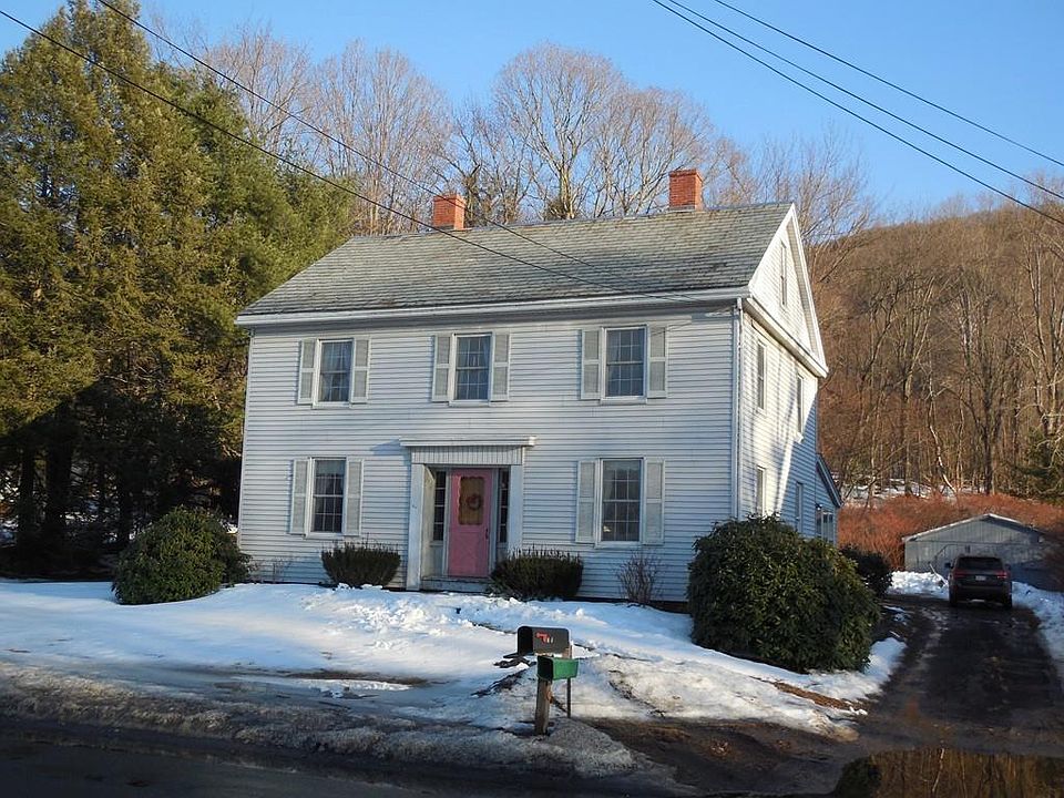 This classic Colonial is located in the rural Mt. Tom section of Easthampton and has retained many of the authentic features, yet has modern updates to the kitchen, bath and most of the mechanical aspects. The first floor has a flexible floor plan with a formal dining room, living room w/ fireplace, updated kitchen, den, and rear family room with a cathedral ceiling and original fireplace w/ beehive oven. There is a screened porch off the family room with a view of the back yard which often offers scenes of wildlife from abutting Mt. Tom. Upstairs are four good sized bedrooms. Some of the mechanical updates include a 200 amp. electrical panel, newer oil tank, replacement windows and upgraded insulation. Convenient location, close to all amenities.