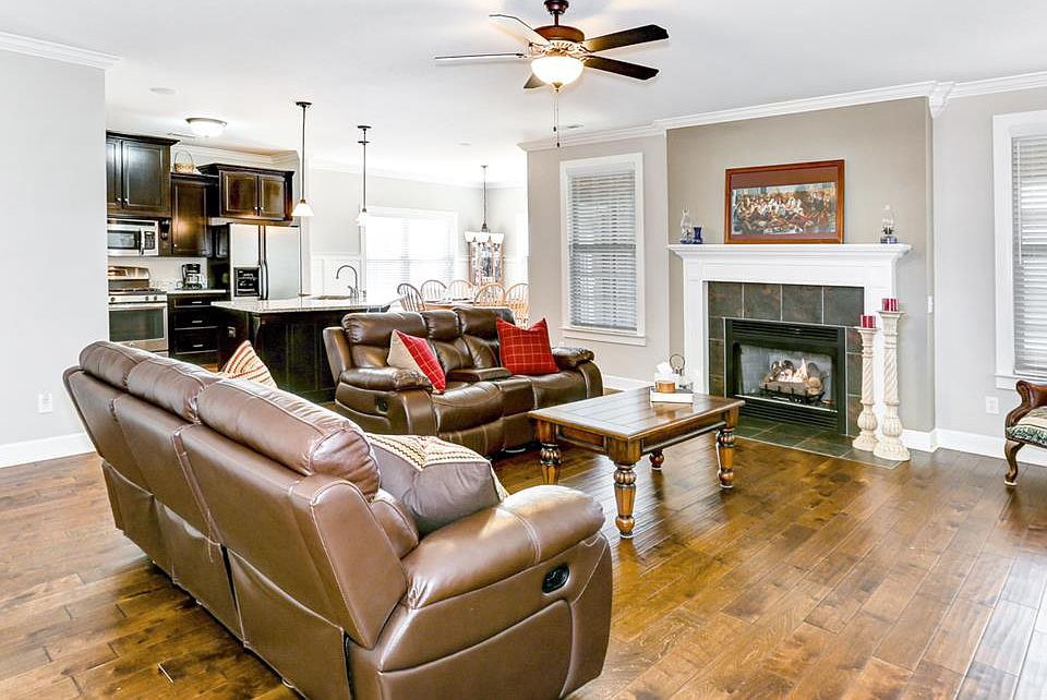 - FAMILY ROOM DESC: Ceiling Fan, Smooth Ceiling, Wood Floor, Crown Mold, Fireplace, 9? Ceiling