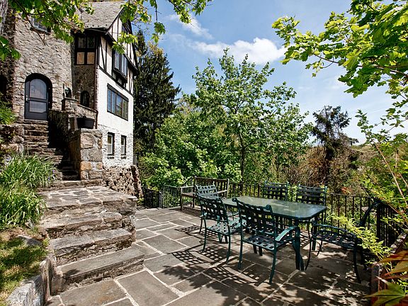 A Commuters dream. this inviting Tudor home has it all. A spacious living room with vaulted ceilings, exposed beams with a stone fireplace, a gracious dining room, spacious family room and kitchen with granite counter tops and stainless steel appliances. the house has great flow, updated baths and kitchen, hardwood floors, central air and full basement. Beautiful landscaping with slate patios and steps in the rear of the property complete this lovely private setting. Walk to train and village.
