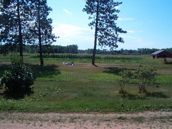 Country farmhouse with three bedrooms, four car garage, newer shingles, vinyl siding, & a great location on forty six acres of tillable land.