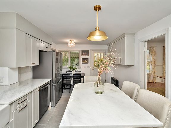 This elegant Victorian beautifully combines timeless character with modern updates! New roof, leaf guards, paver walkway, granite steps and rebuilt chimney stack. Charming and spacious floorplan bathed in natural light with polished hardwood floors and new crown molding. High end updates in bathrooms and eat in kitchen with natural stone countertop and custom island. Sizeable wrap around front porch, lovely foyer w/window seat and updated lighting throughout. Double sitting rooms, one with built in bookcases flows into an oversized dining room with a 2nd wood burning fireplace. The 2nd floor continues to impress with stunning bathrooms,1 with a clawfoot tub and separate shower. Uniquely oversized bedroom w/built in window seat, cabinets and custom windows. The 3rd floor has another spacious bedroom, sitting area and walk in attic. A long driveway that encircles the home is ideal for parking. The back deck off the kitchen and new bluestone patio w/firepit is perfect for summer nights!