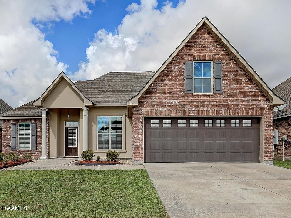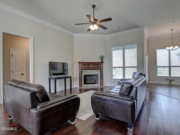 This home in Meadows Bend Lakes is move in ready, with the highlight of the home being a great back yard view of one of the subdivision ponds. The wide open floor plan encompasses the dining room, living room and kitchen with island while also offering a breakfast area with a great view of the back yard. The split plan locates the primary en suite bedroom at the rear of the home with quick access to a built in desk area and laundry room, with the second and third bedrooms and full bath on the opposite side of the home. Relax on the covered patio and take in the view of the pond at the end of the day, or enjoy a stroll around the neighborhood to view more ponds and ducks.Located a mile and a half from Ambassador Caffery and just minutes from the sports complex, grocery stores, restaurants, and everything else that Youngsville has to offer, this could be your next home!