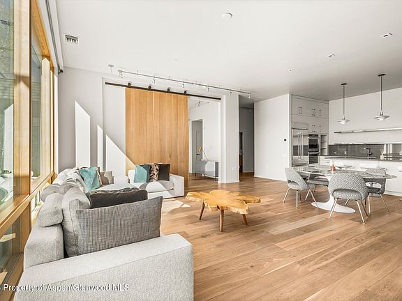 Here's your opportunity to own a coveted and impeccably maintained ground-floor residence in the highly desirable Park Modern community. This spacious three-bedroom, three-bathroom home is ideally located within walking distance of Willits Town Center, the Rio Grande Trail, and the Roaring Fork River. The residence features soaring 10-foot ceilings, expansive windows that flood the space with natural light, and sleek, modern finishes throughout. An abundance of amenities, including electronic blinds, a generous outdoor patio perfect for entertaining or relaxing, built-in shelves, wide plank wood flooring, wall ovens, and two heated, assigned garage parking spaces for ultimate convenience.