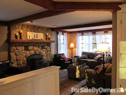 Beautiful Colonial with a lot of extras....located close to the golf course at the end of a quiet street....beautiful woodwork through out....cherry cabinetry, corian countertops, and stainless steel appliances included in this gourmet kitchen with a vaulted ceiling......new drive way, freshly painted and landscaped.......lovely three season porch with vaulted ceiling. Includes an above ground pool with large trex deck and 2 newer storage sheds in a fenced in yard. Living room features oversized fieldstone fireplace. 4 good sized bedrooms and a partially finished basement family room make this a great home. Master bedroom has 2 walk-in closets. Forced hot water heating system and pellet stove. Central air and 1st floor laundry room. OH 6/1 12-2